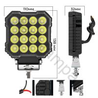 Фара рабочего света светодиодная для спецтехники 60 Вт, 12-24 вольта, Ширина 110 мм * Высота 110мм (с креплением 135мм) * Толщина 32мм